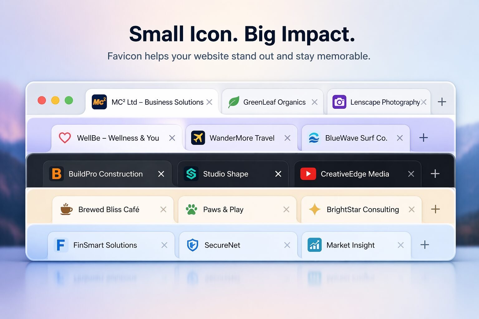 What is a Favicon and Why It Matters. A favicon is the small icon that appears next to your website name in a browser tab, bookmark list, and search results. Although it is tiny, it plays a powerful role in your brand identity. Think of a favicon as your digital logo in its simplest form. It helps users instantly recognize your website when they have multiple tabs open, making your site easier to find and remember. A well-designed favicon is important because it: